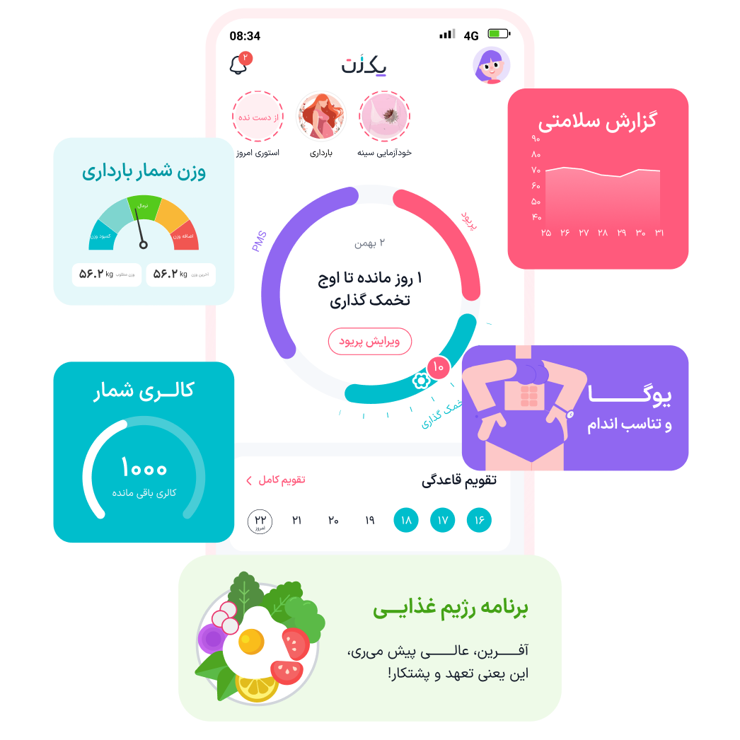 With Yekzan’s period calendar, we track your cycle, PMS, and ovulation and provide personalized insights about your body changes.